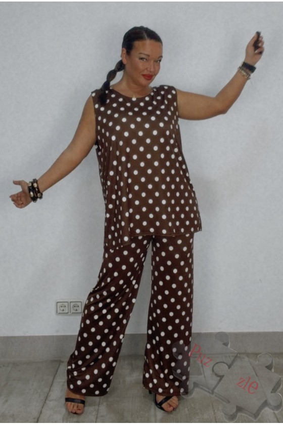 Conjunto de punto frío en tono marrón con lunar blanco , disponible en talla única