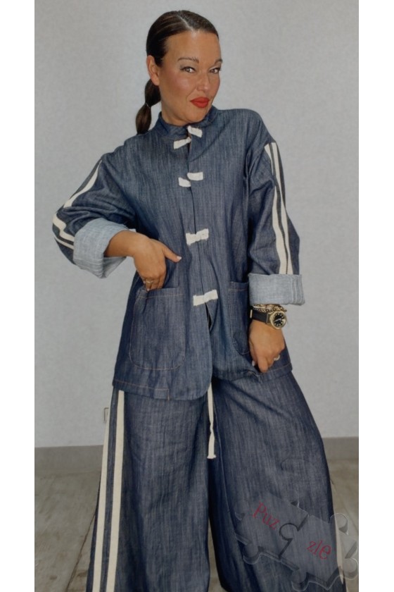 Conjunto tejano con líneas laterales, disponible en talla unica