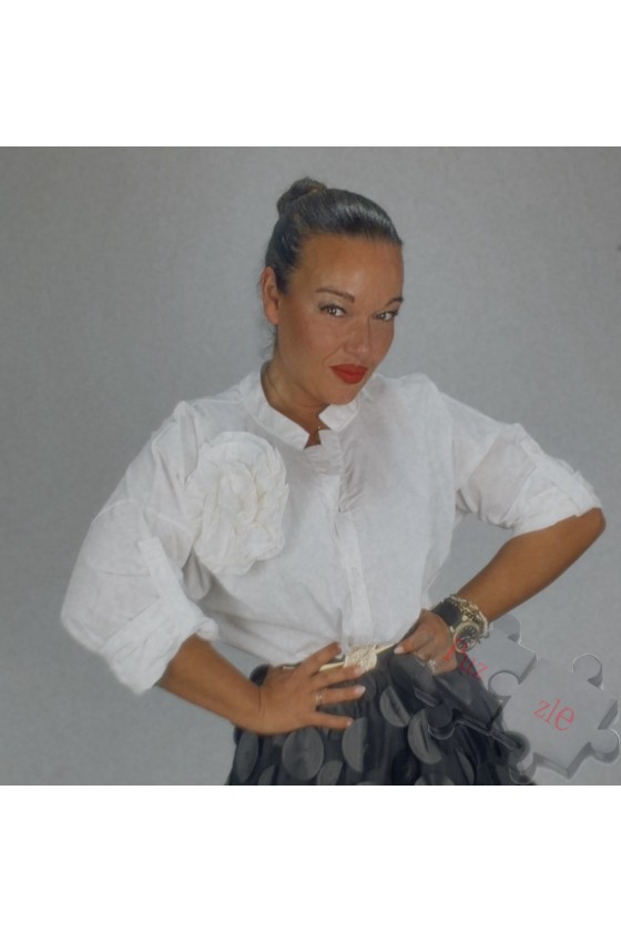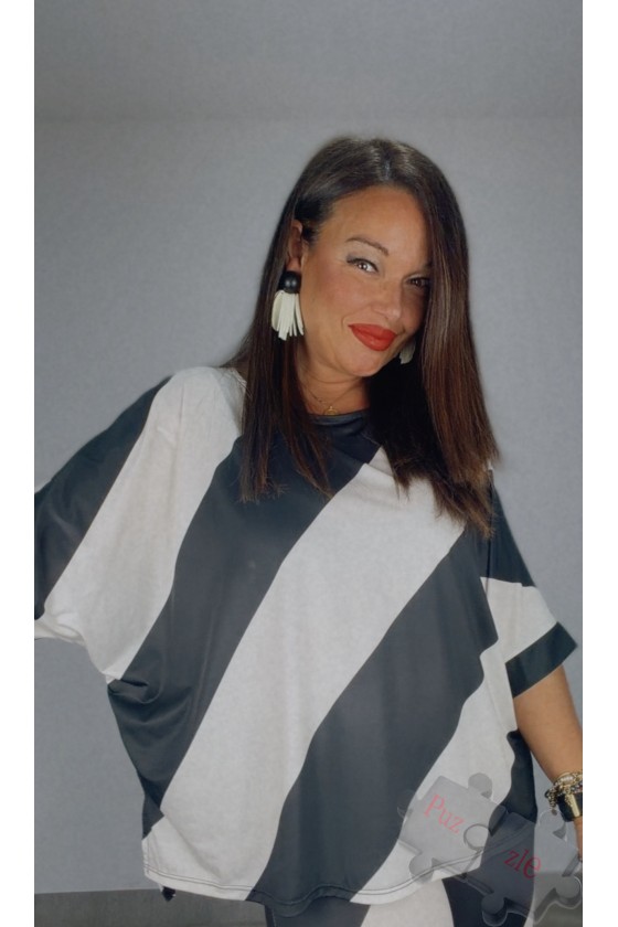 Camisa en blanca y negra con mangas abullonadas, disponible en talla única
