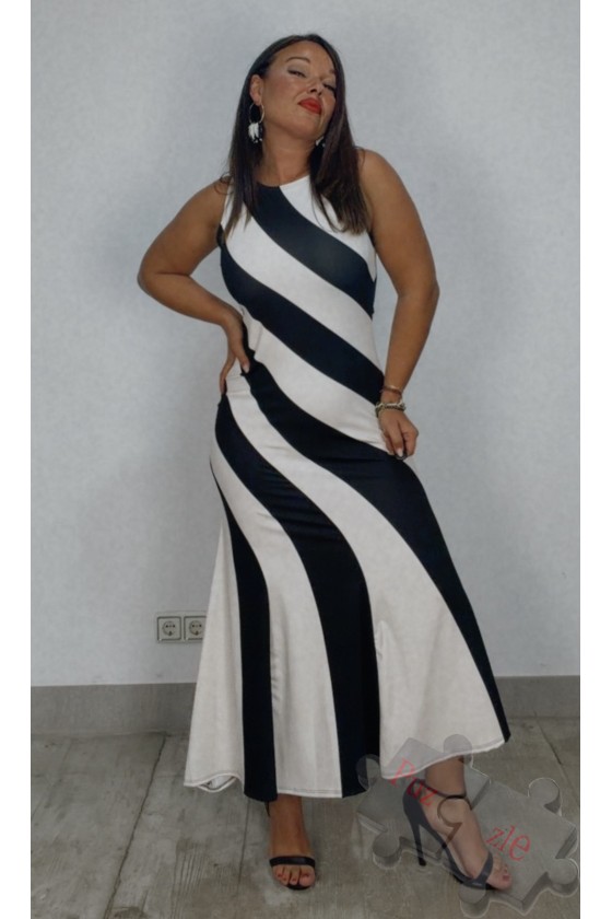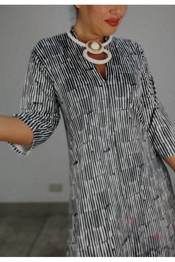 Vestido de punto frío en tono blanco y negro con escote de pico , disponible en talla única