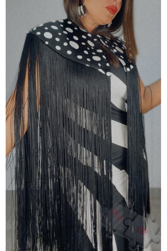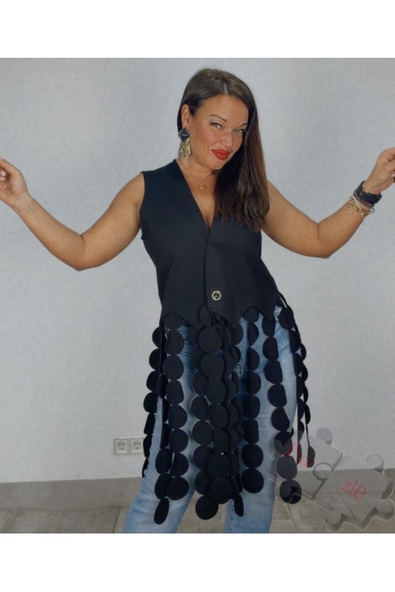 Chaleco en tono negro con flecos de círculos , disponible en talla única
