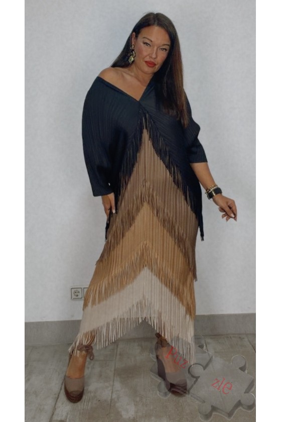 Medidas: Contorno 112cm y largo antes del fleco 50cm y largo hasta final del fleco 96cm