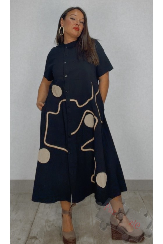 Vestido negro con detalles en tonos beig , disponible en talla única
