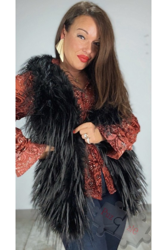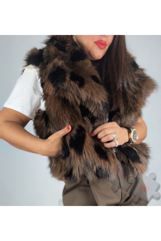 Abrigo de pelo oversize , en tono negro y marrón , disponible en talla única