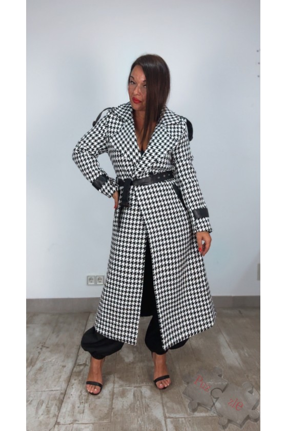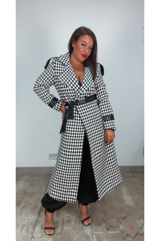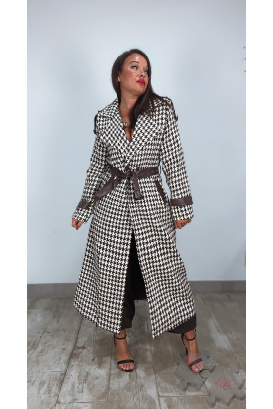 Gabardina de polipiel en marrón contorno vuelto en mangas de leopardo y cinturón , disponible en dos tallas