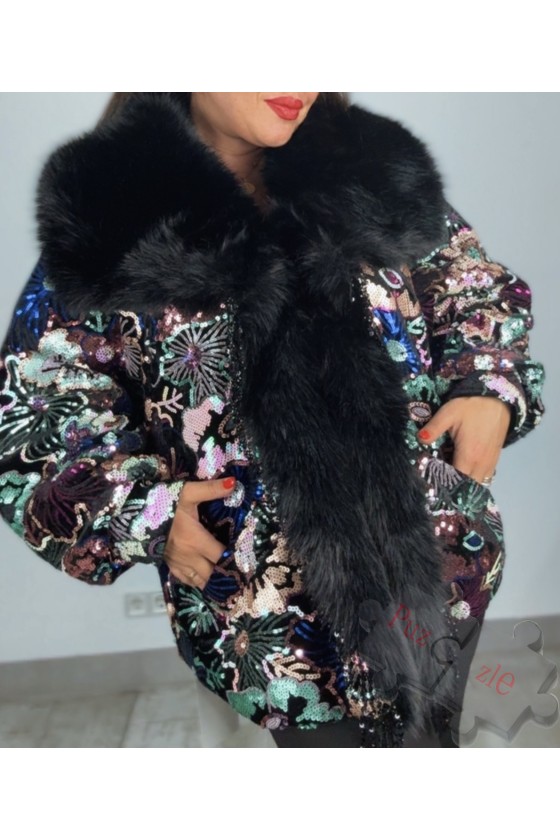 Chaqueta en tono negro con maxi adornos, disponible en talla única