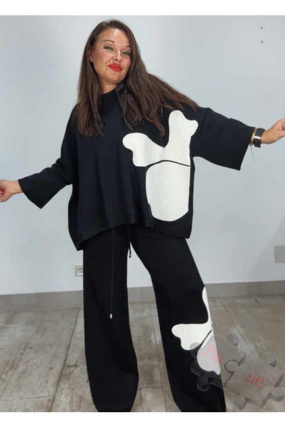 Conjunto de punto en tono negro con encaje en pantalon y bajo rebecon , disponible en talla única