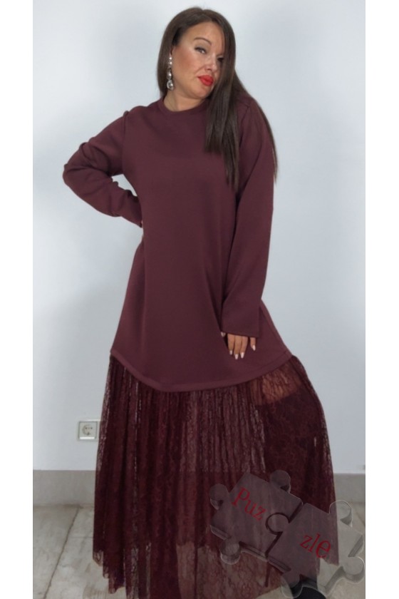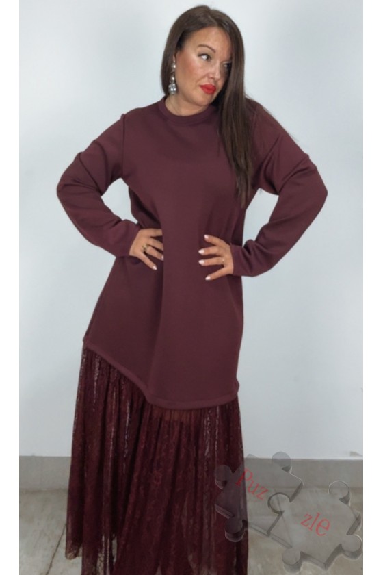 Vestido de punto milano con encaje en bajo , disponible en talla única