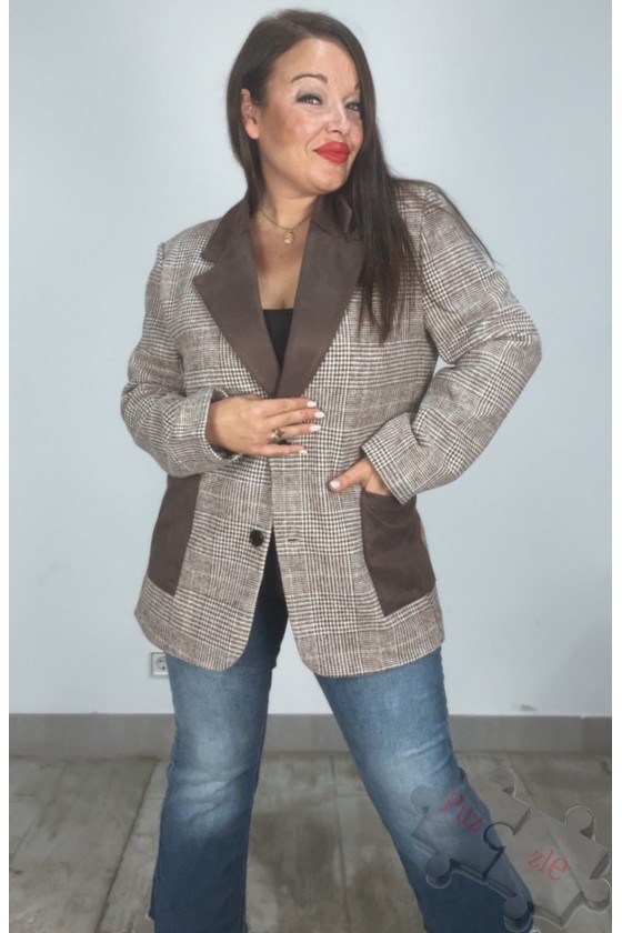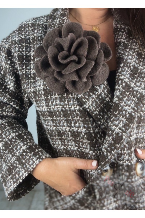 Chaqueta de cuadro en tonos marrones con broche flor , disponible en talla única