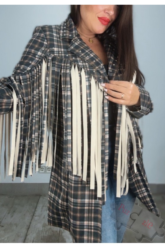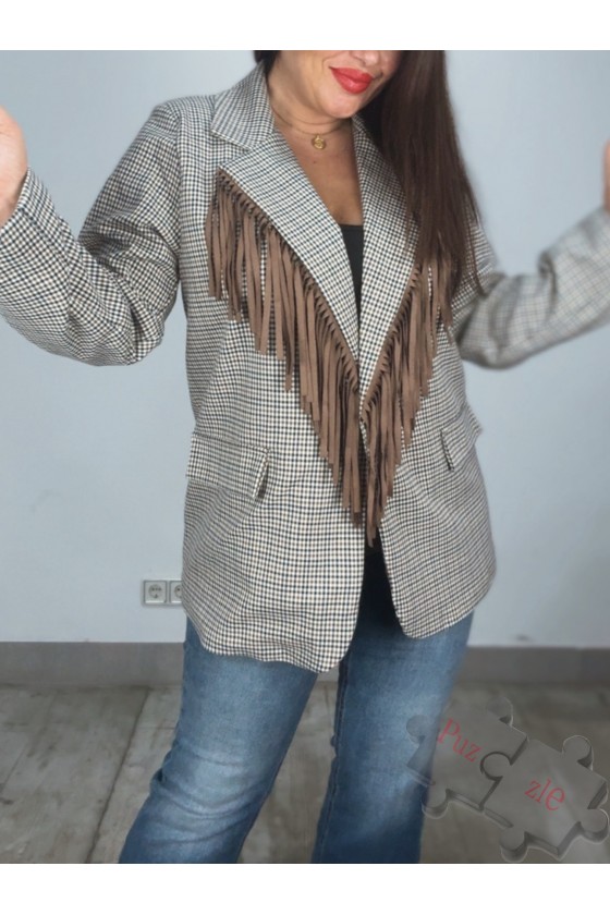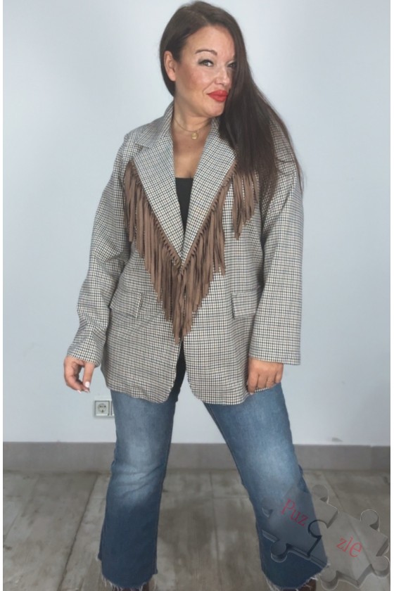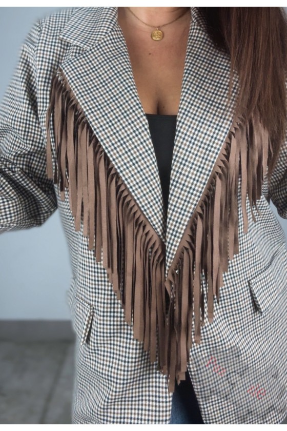 Chaqueta de cuadros con flecos en solapa , disponible en talla única