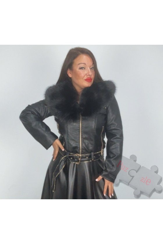 Chaqueta de polipiel en tono negro con pelo en el cuello desmontable y va forrado de pelo . disponible en tallas