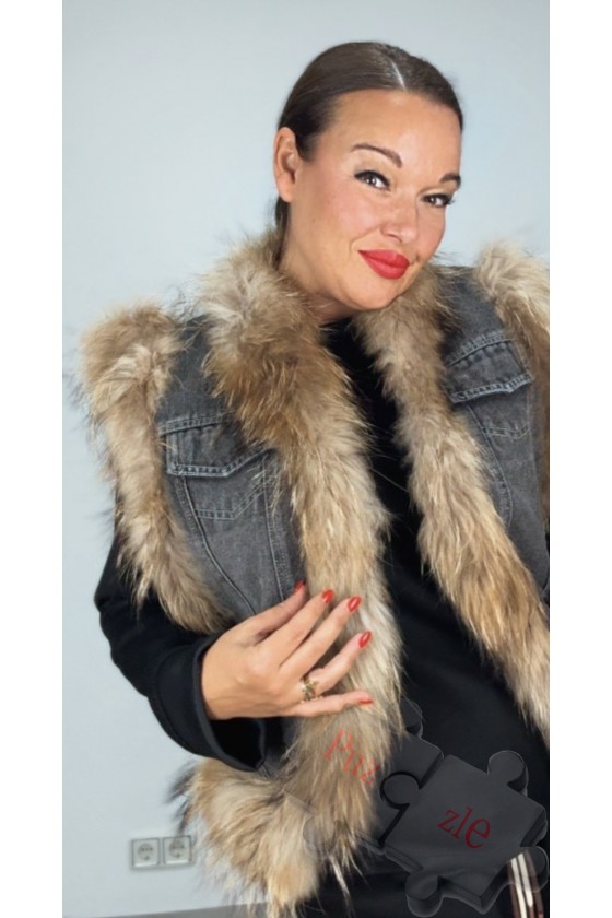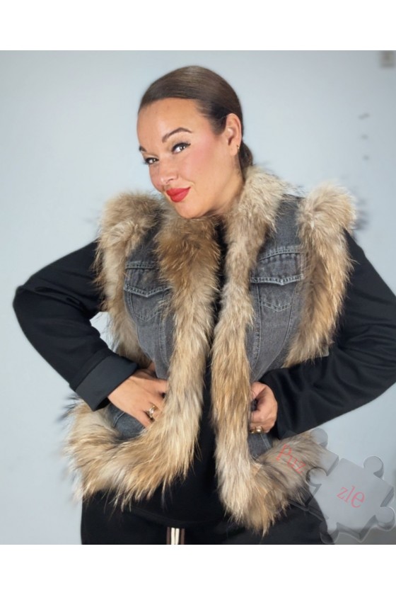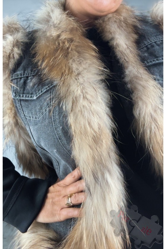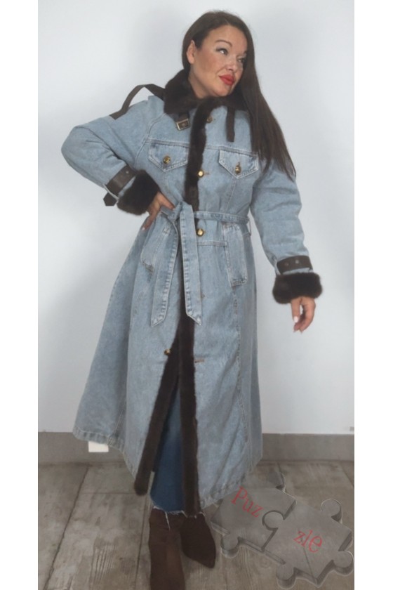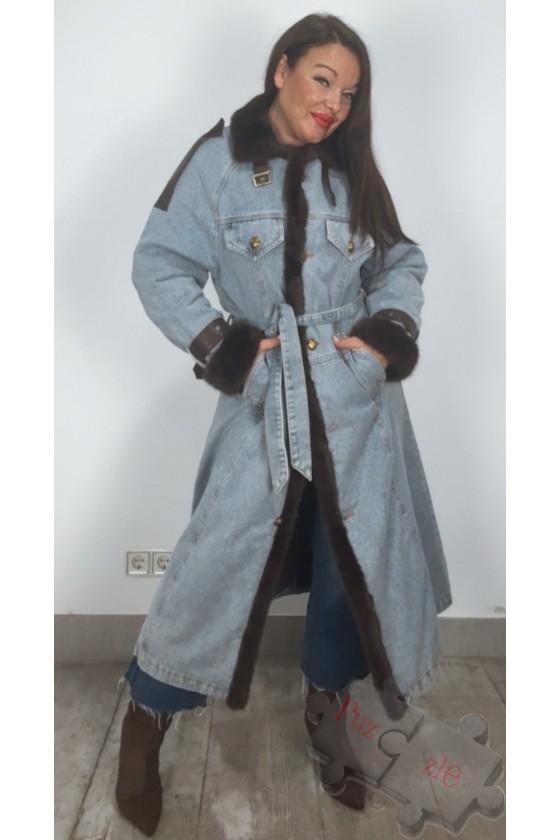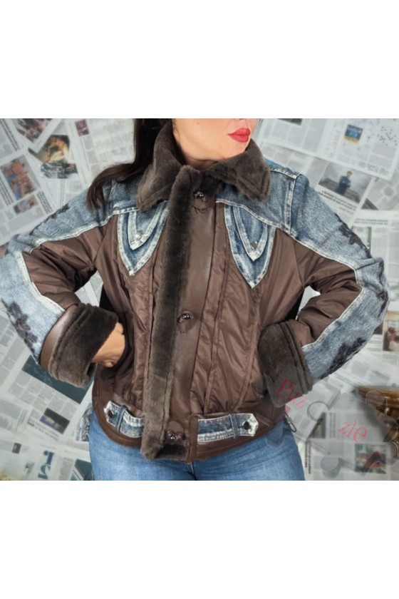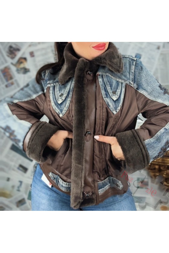 Abrigo tejano con pelo en tono marrón , disponible en tallas