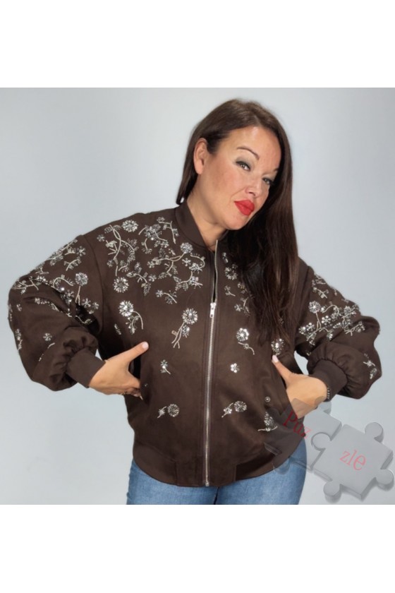 Bomber de antelina con lentejuela y pedrería , disponible en talla única