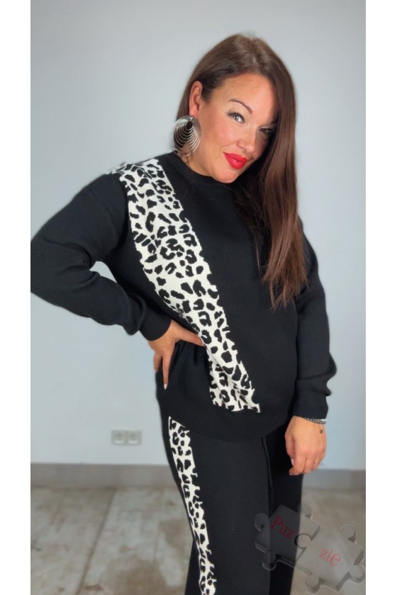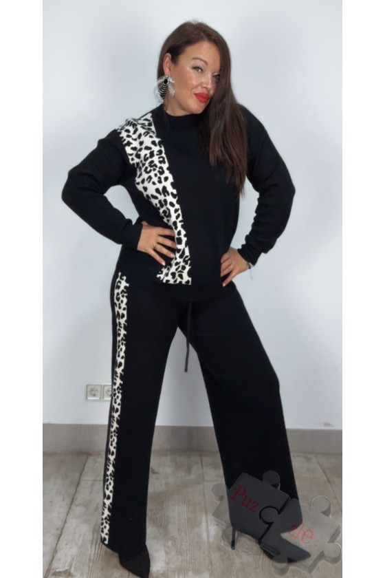 Conjunto de punto en tono negro con línea en animals print , disponible en talla única