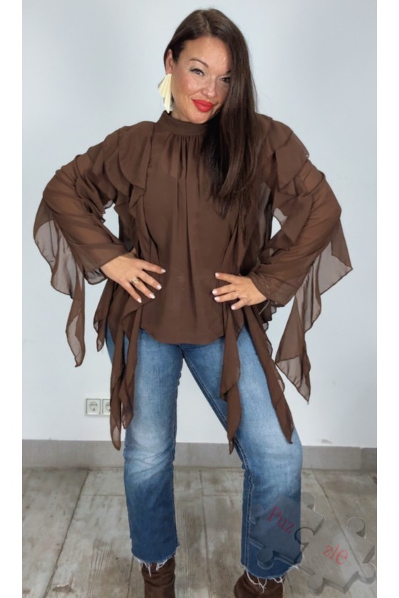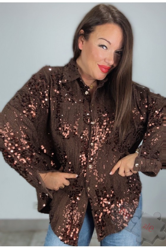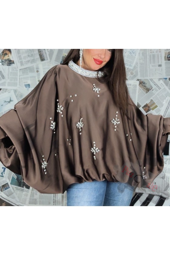 Chaqueta de crepé en tono marrón con strass, disponible en talla única