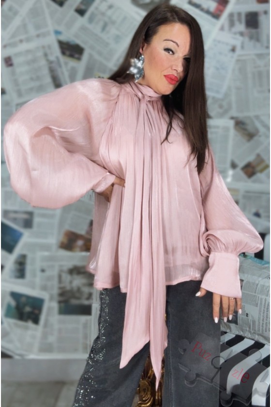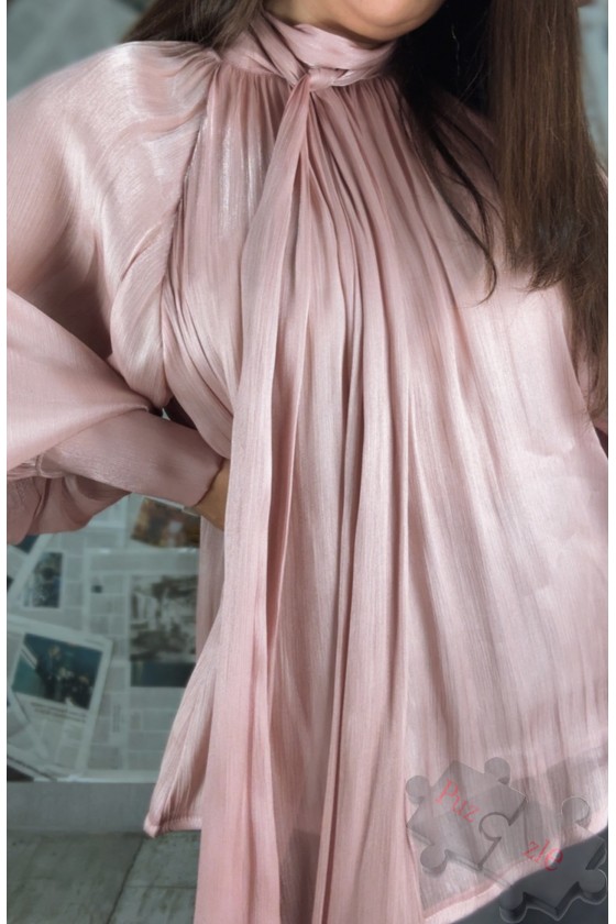 Camisa en tono rosa , con lazada en cuello, disponible en talla única