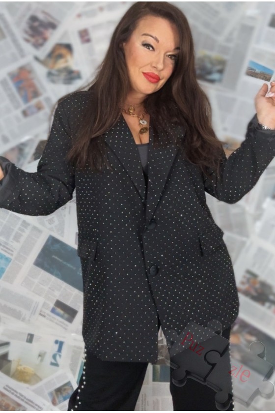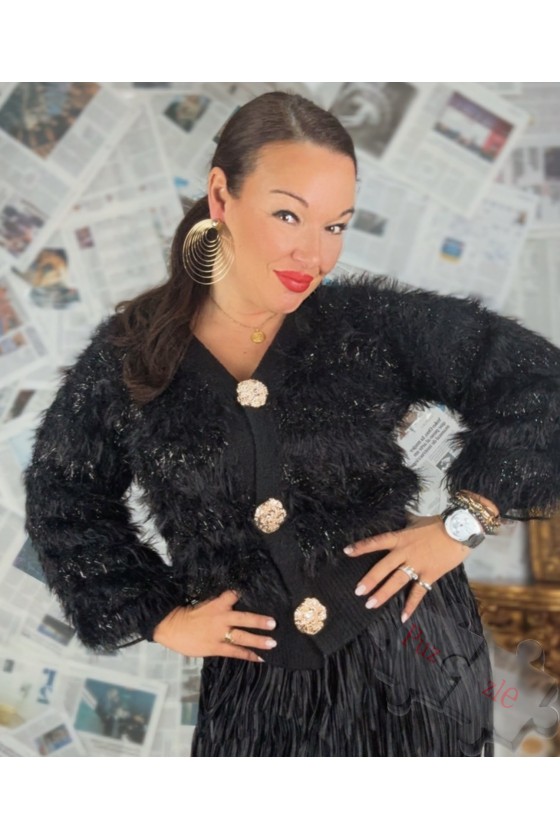 Chaqueta en tono negro con brillo y maxibotones, disponible en talla única , lleva elastano