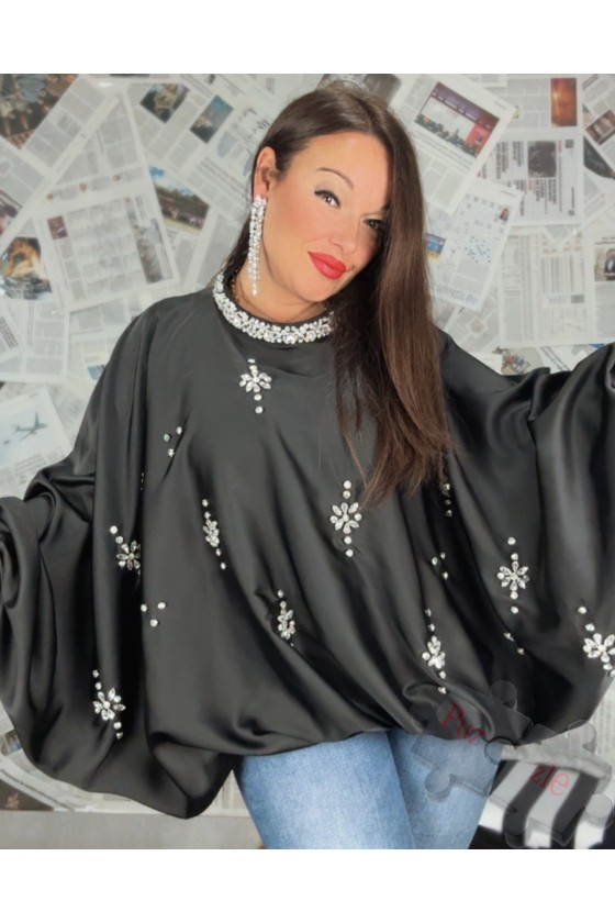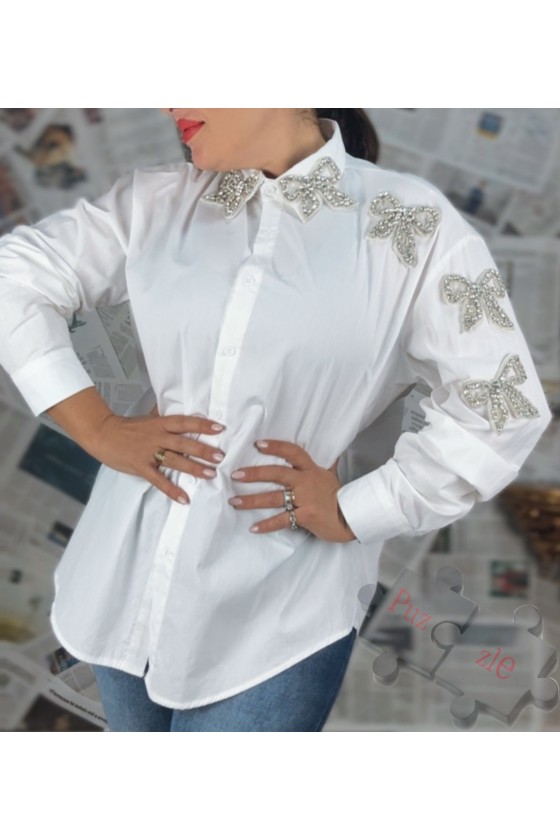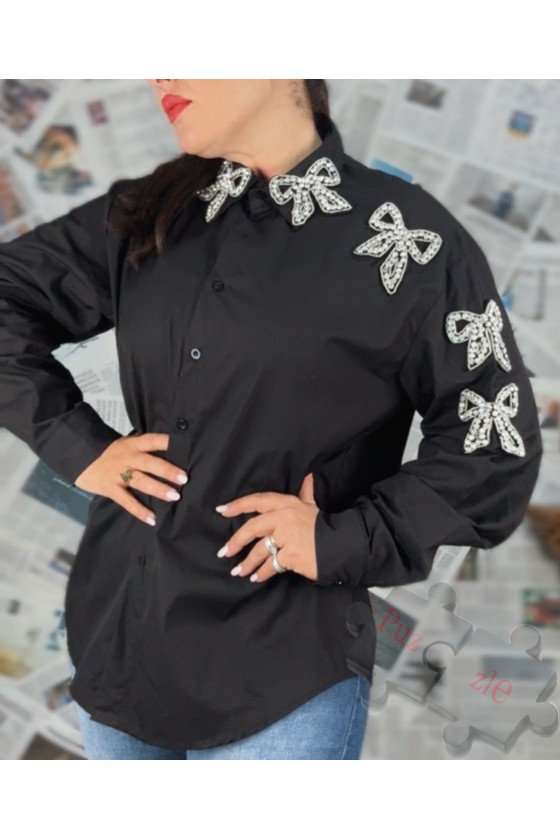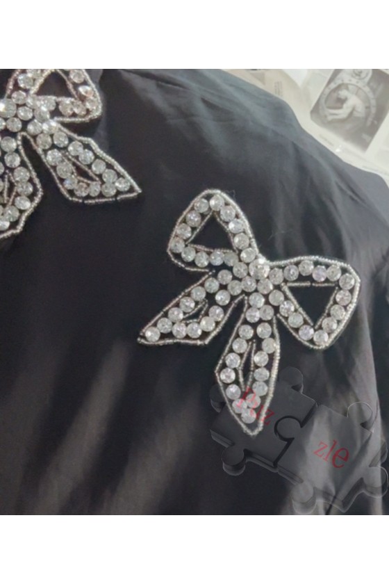 Camisa en dos colores blanca y negra con lazos strass , disponible en dos tallas