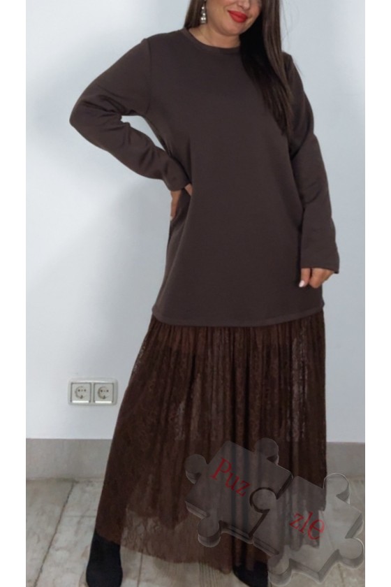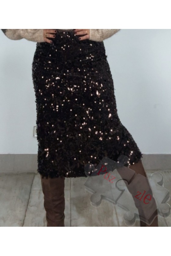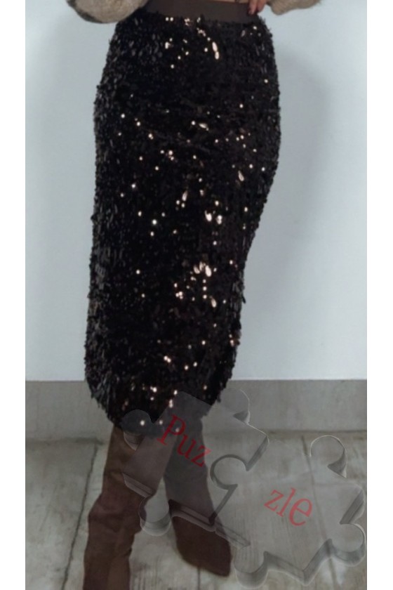 Fald de terciopelo con lentejuelas en tono chocolate, disponible en tres tallas