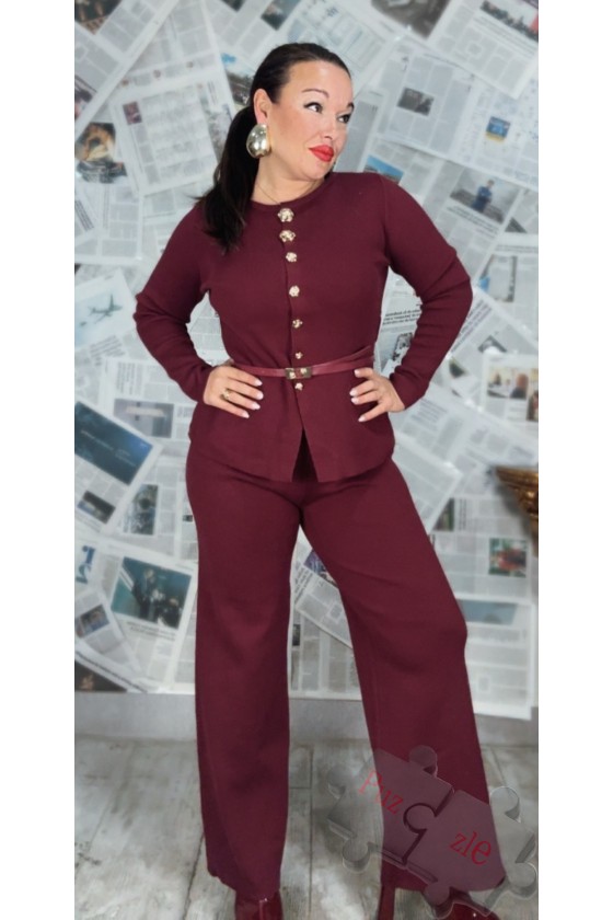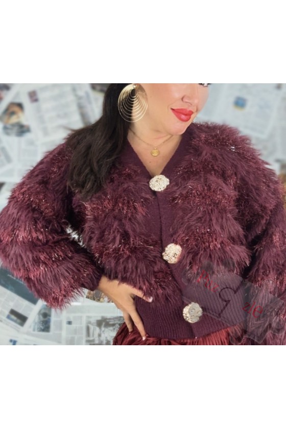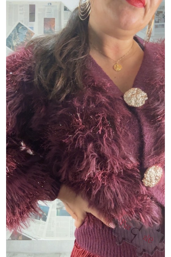 Chaqueta de lana en tono burdeos con maxi botones, disponible en talla única