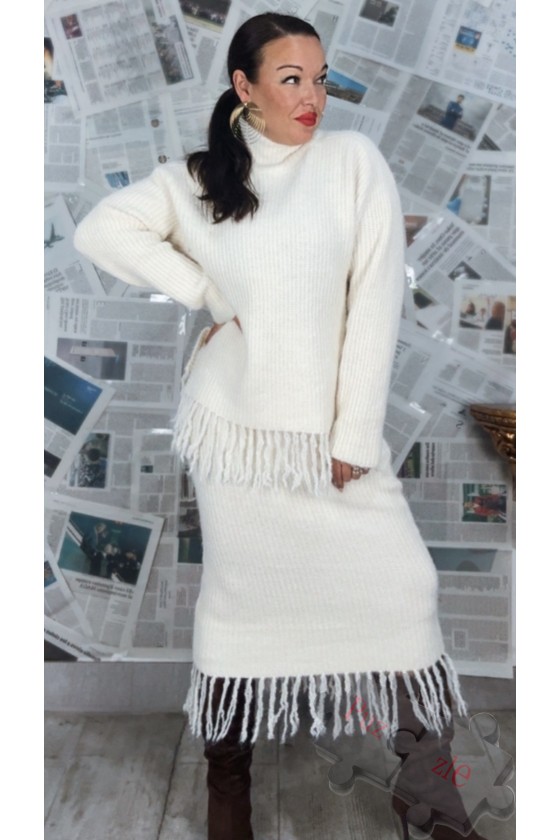 Conjunto de lana con flecos en tono marrón , disponible en talla única