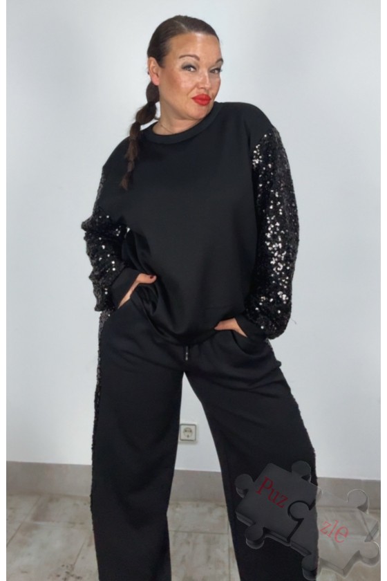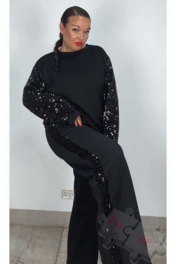 Conjunto en negro de punto milano de pantalón y sudadera , disponible en talla única