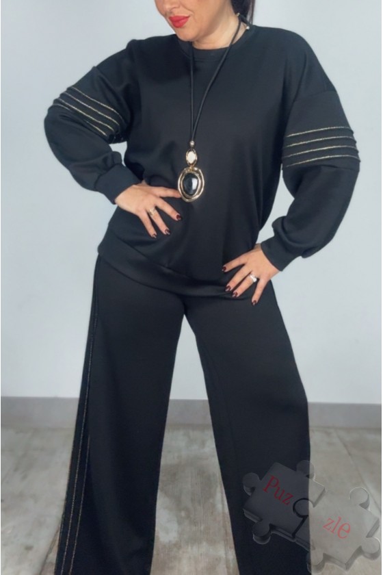 Conjunto de punto milano en tono negro con detalles en dorado , disponible en talla única
