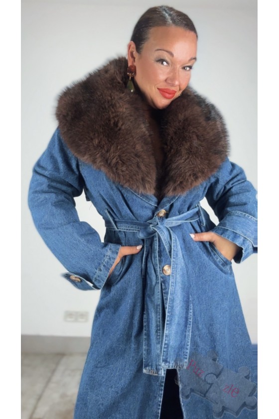 Abrigo tejano con cuello de pelo desmontable , disponible en Talla única