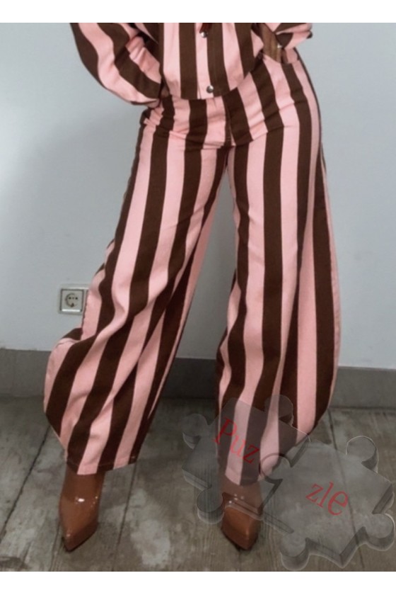 Pantalón tejano no cede , en rayas rosas y marrones, disponible en tres tallas: