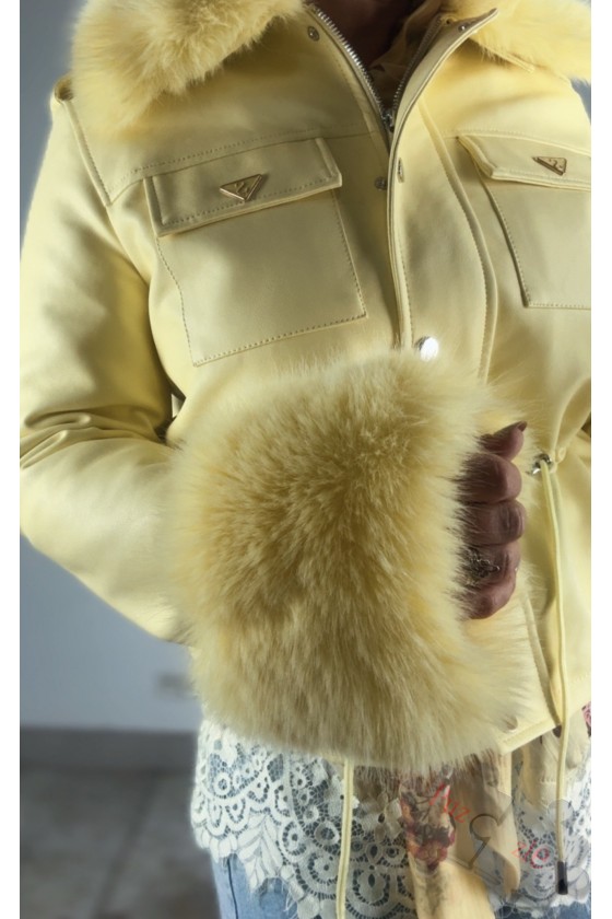 Chaqueta de polipiel en tono amarillo con pelo desmontable , disponible en dos tallas