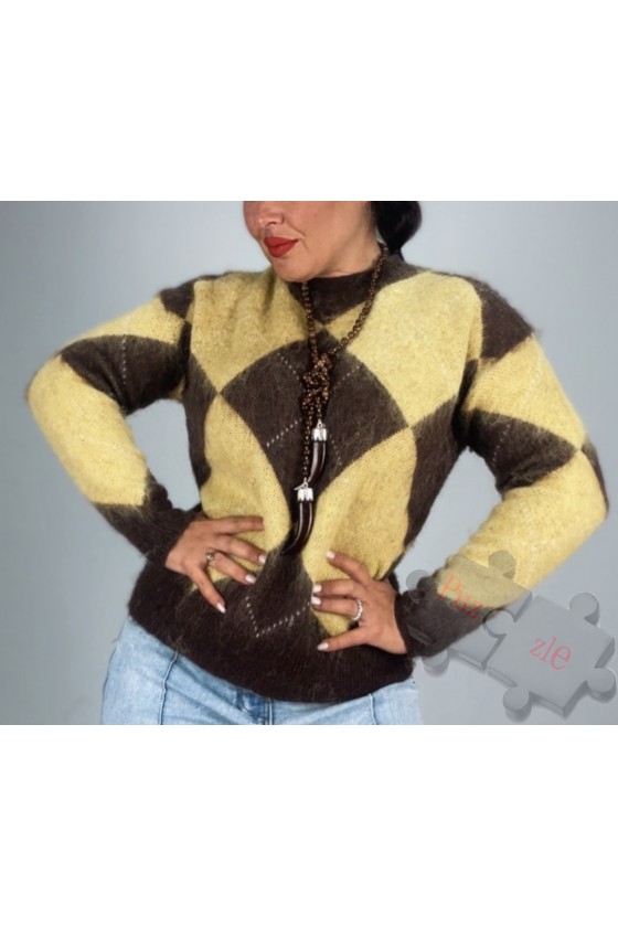 Suéter de lana en tono amarillo y chocolate , disponible en talla única