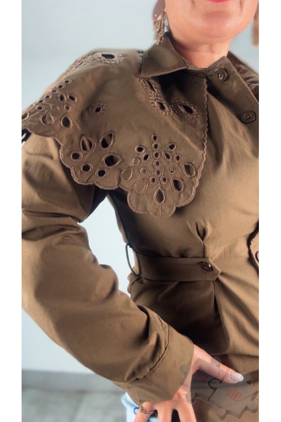 Chaqueta en tono marrón con maxi baberola desmontable, disponible en tres tallas