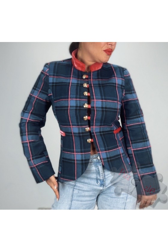 Chaqueta de cuadros con encaje y tachuelas, disponible en tallas: