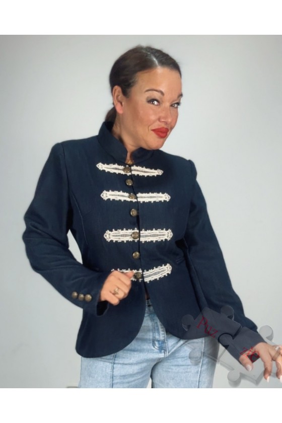 Chaqueta tejana con bordados y botones tipo militar , disponible en tallas:
