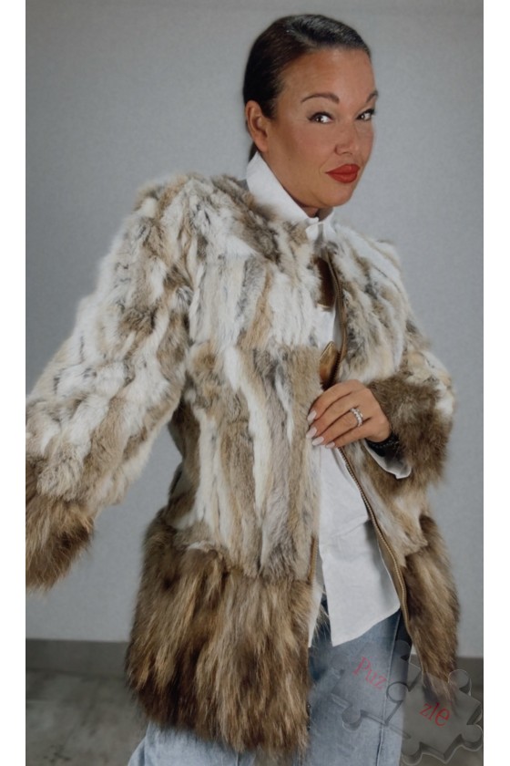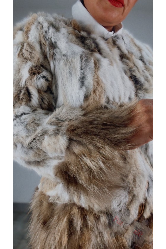 Abrigo de pelo natural en tono gris , se abrocha con corchetes y lleva bolsillos , disponible en talla única