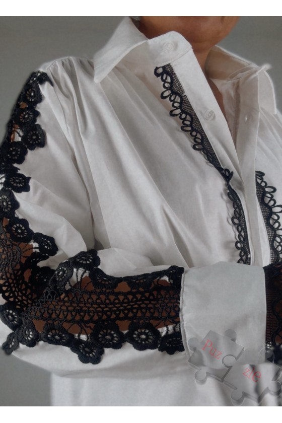 Camisa en tono blanco con puntilla negro , disponible en talla única
