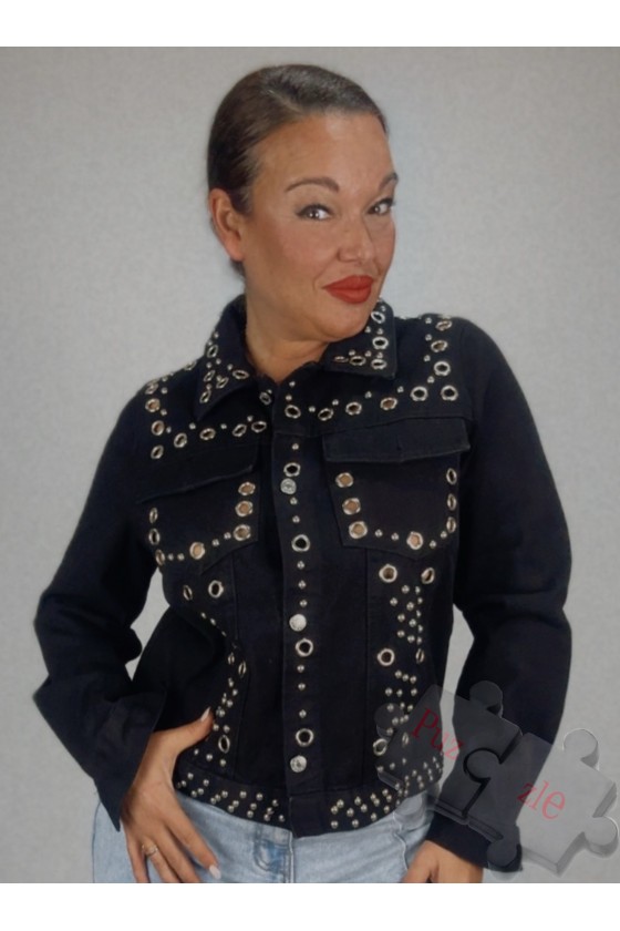Chaqueta tejana en tono negro con arandelas en plata , disponible en tres tallas