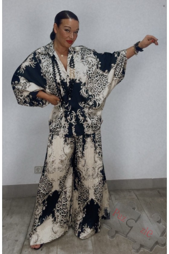 Conjunto de satén estampado de pantalón y bluson , disponible en talla unica