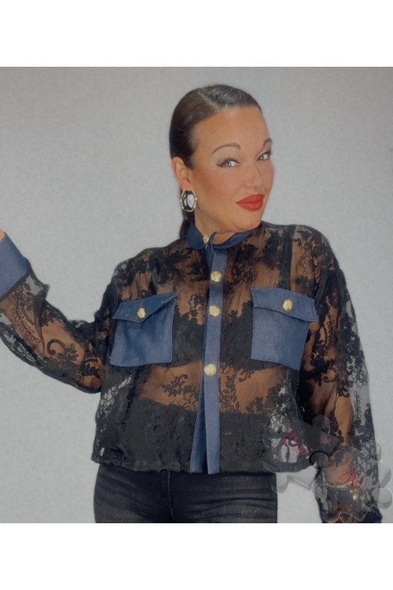 Camisa de organza con encaje , disponible en talla única