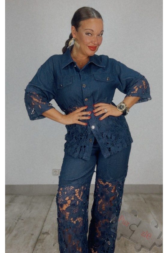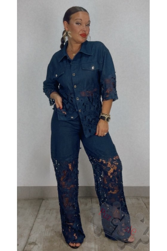 Conjunto tejano de pantalón y chaqueta, disponible en talla única
