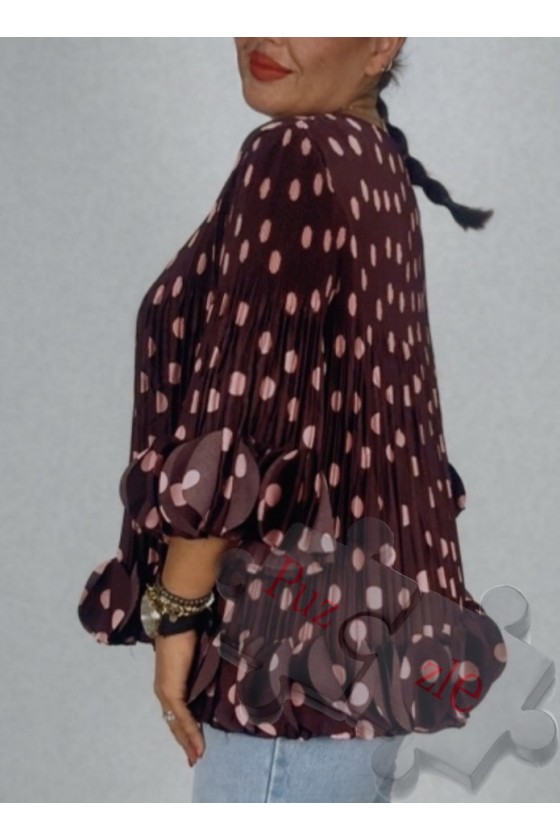 Camisa de tejido plisado estampado en lunares, disponible en talla única