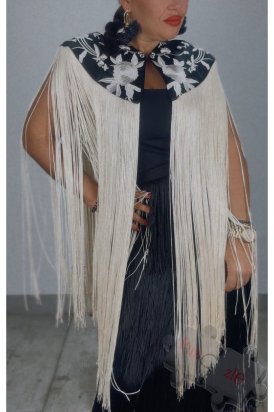 Capa de fleco con hombreras y encaje , disponible en talla única