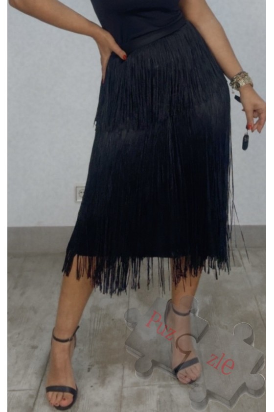 Camisa en tono negro con detalles de flecos en la parte delantera