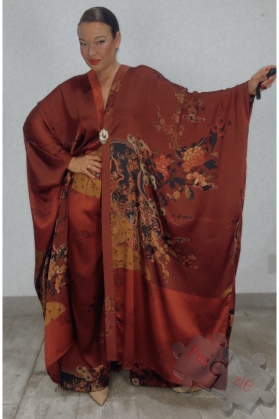 Conjunto de pantalones y kimono en tono granates, disponible en talla única