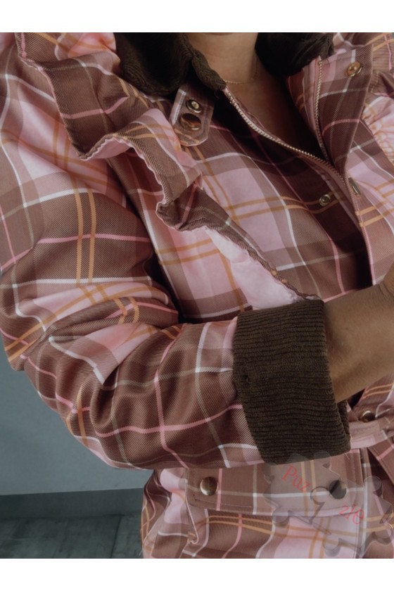 Gabardina de cuadros rosa y marrón , disponible en dos tallas