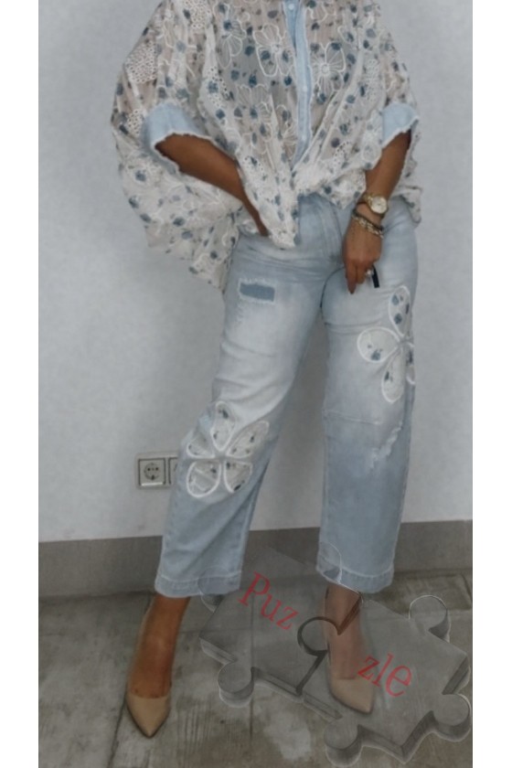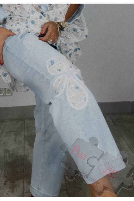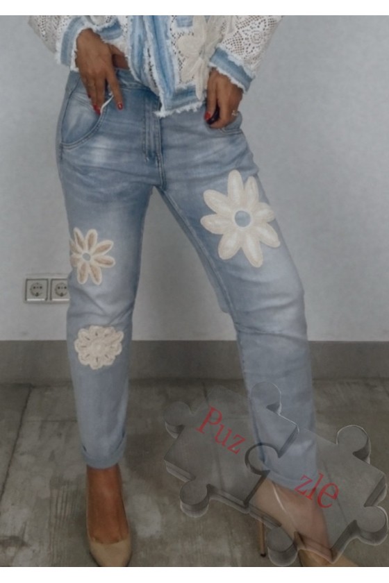 Pantalón tejano con flores incorporadas, disponible en 4 tallas