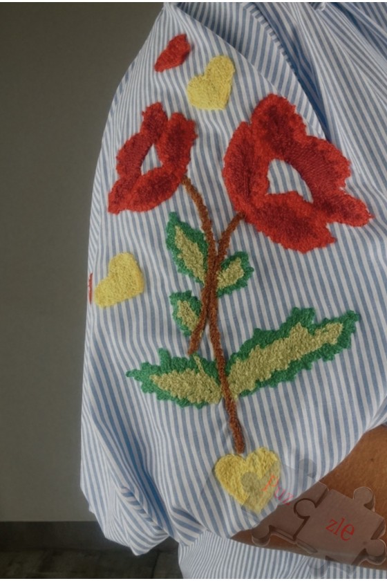 Camisa de rayas con bordados en mangas, disponible en talla única