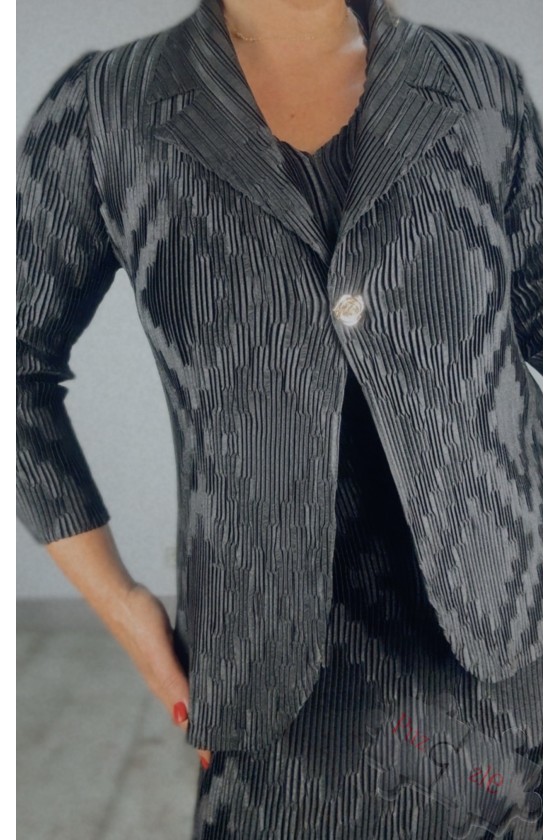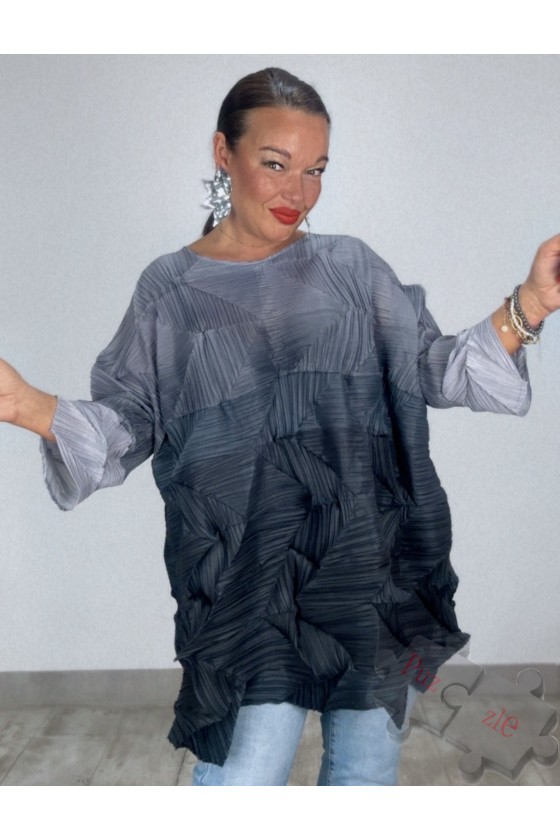 Blusón de tejido acordeón en tonos negros, disponible en talla única