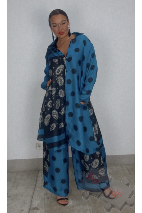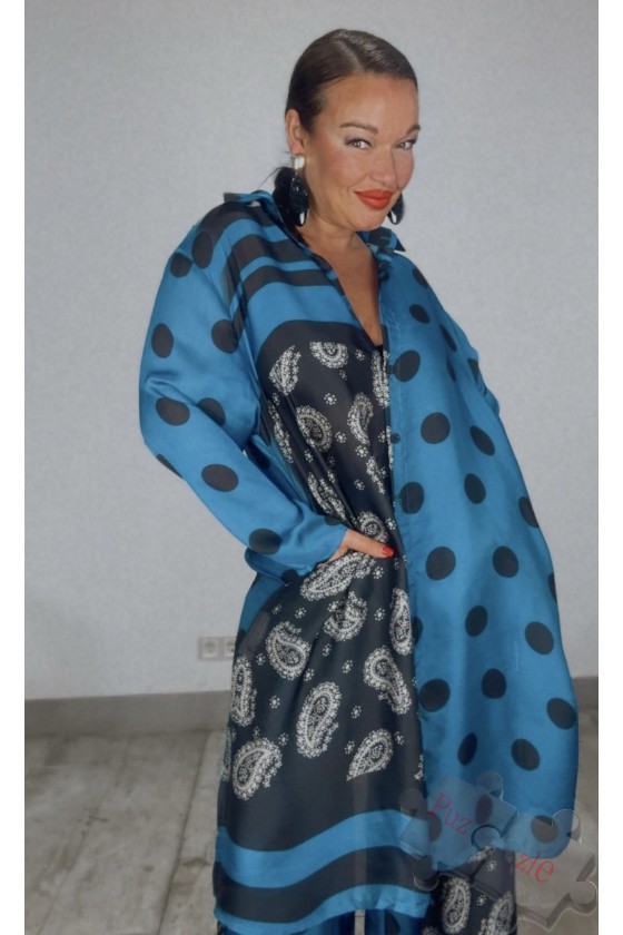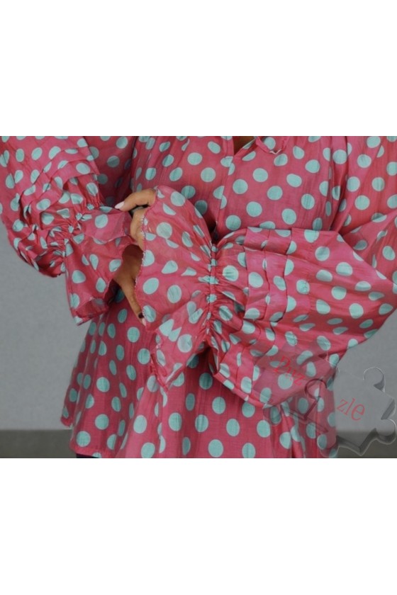 Camisa de satén en lunares con cuello bobo, disponible en talla única