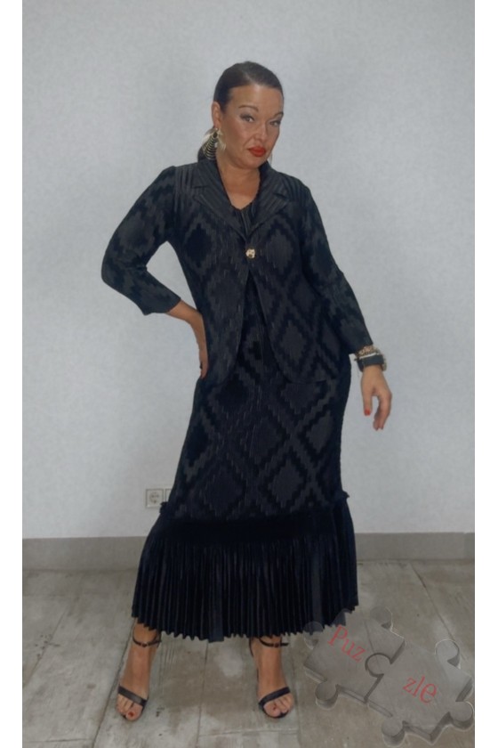 Vestido plisado en tono negro , disponible en talla única pero se adapta perfectamente desde la talla 40 a 52/54
